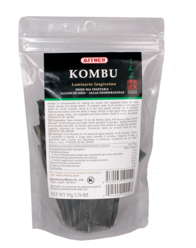 Kombu je mořská řasa která se sklízí v chladném severním moři u ostrova Hokkaido.