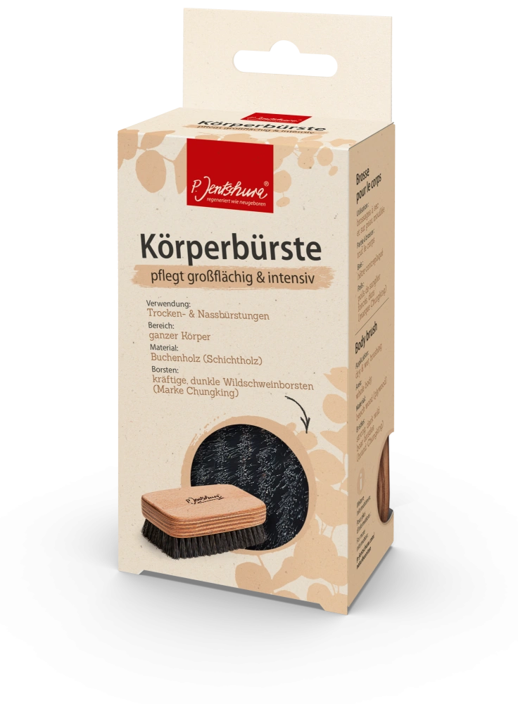 Kartáč je z odolného dřeva, vhodný na suché nebo mokré kartáčování. Kartáč na tělo má drsné černé Chungking štětiny. Je vhodný na části těla se silnou kůží jako jsou paže, ruce, nohy a chodidla.